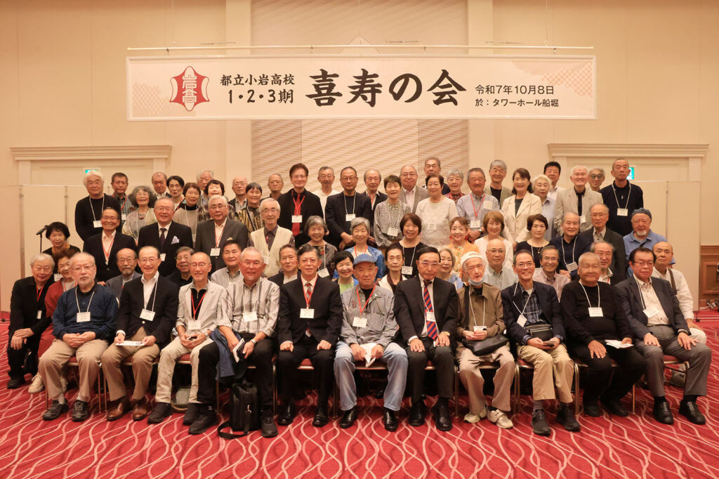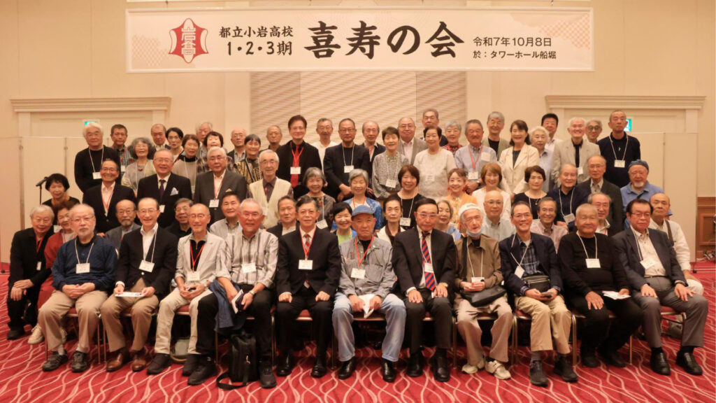 過日10月8日(水)タワーホール船堀2階(桃源の間)にて最後の1期・2期・3期合同同期会『喜寿の会』は70名が集い、小岩高校創設時三代の同期の皆さんと懐かしくも楽しく和気藹々の時間を過ごしました。